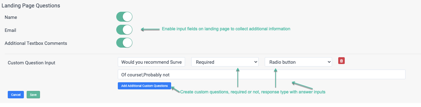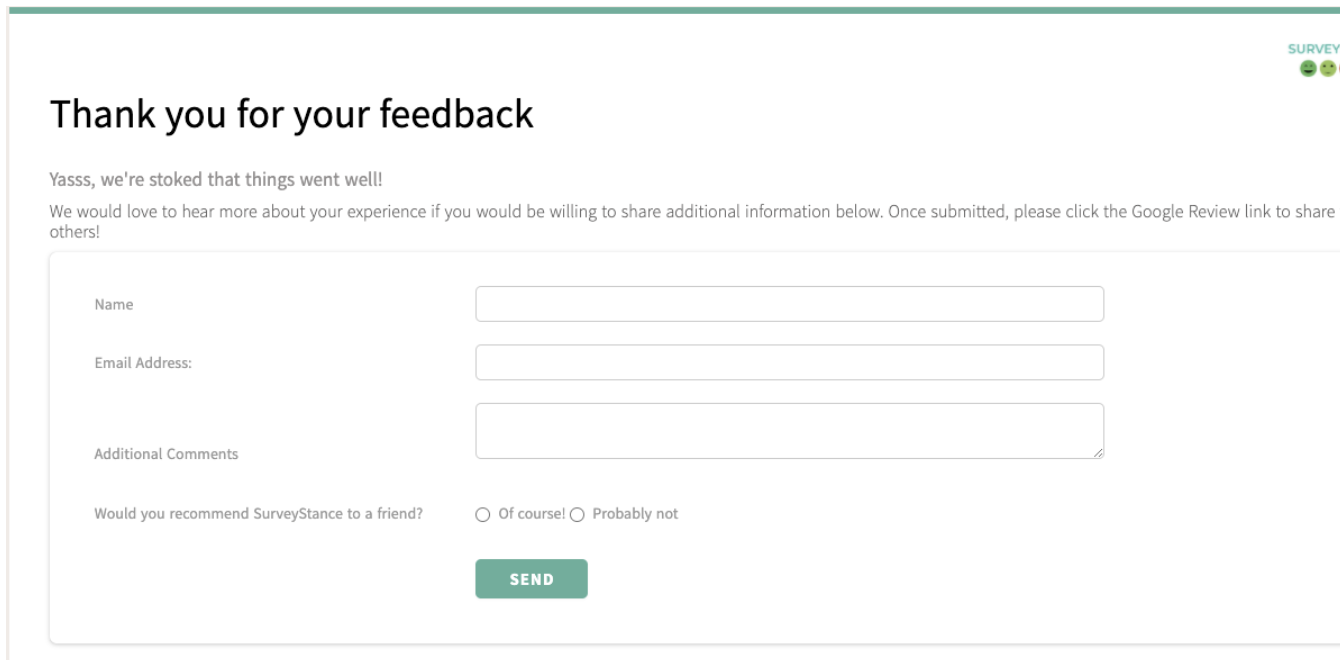 Landing Page (the web page your Customer will be directed to after they an click emoji response)