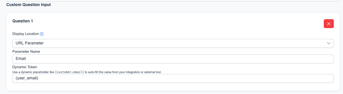 - Confirm the survey URL includes the {user_email} placeholder. Example: