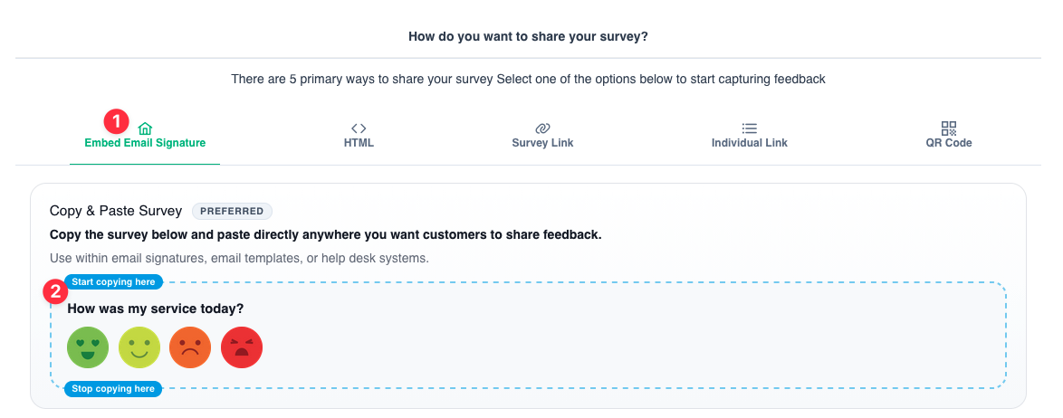 - Copy the survey HTML and paste it into your email signature.